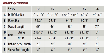 Mandrels are available in string or nearbit configurations and are available in a full range of sizes to overcome logistic difficulties normally associated with stabilization equipment at the rig site.